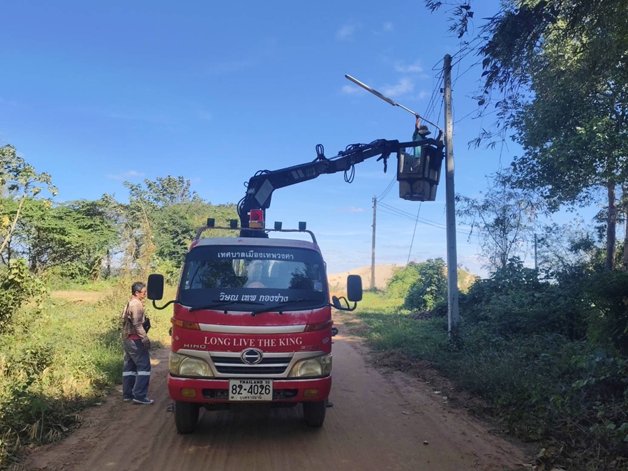 วันพุธ, 26 พฤศจิกายน 2568 11:36วันศุกร์ที่ 26 ธันวาคม 2568 นายชูชีพ เหล่ากสิการ นายกเทศมนตรีเมืองเทพวงศา มอบหมายให้เจ้าหน้าที่กองช่าง เทศบาลเมืองเทพวงศา ลงพื้นที่ทำการซ่อมแซมไฟฟ้าส่องสว่างให้กับประชาชนในพื้นที่บ้านห้วยยาง หมู่ที่ 10 เพื่อเพิ่มความปลอดภัยของประชาชนในการสัญจรยามค่ำคืน อำนวยความสะดวก เพื่อสร้างความมั่นใจและเพื่อเพิ่มความปลอดภัยในการใช้รถใช้ถนนในการสัญจรให้แก่ประชาชนในพื้นที่