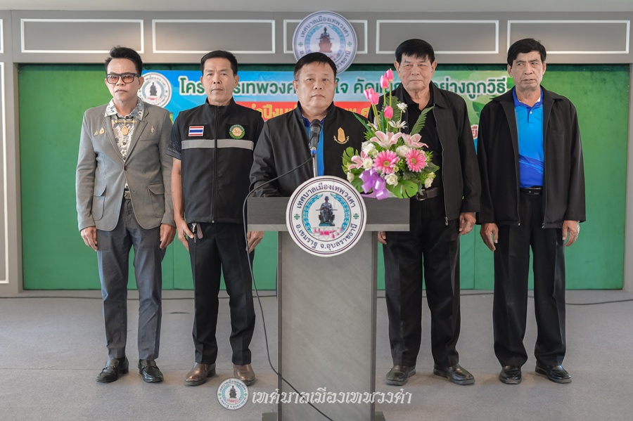 วันอังคาร, 17 มีนาคม 2569 10:02วันอังคารที่ 17 มีนาคม พ.ศ. 2569 งานสาธารณสุขและสิ่งแวดล้อม ฝ่ายอำนวยการ สำนักปลัดเทศบาล เทศบาลเมืองเทพวงศา ได้จัดโครงการเทพวงศาร่วมใจคัดแยกขยะอย่างถูกวิธี ประจำปีงบประมาณ พ.ศ. 2569 โดยมีวัตถุประสงค์ เพื่อดำเนินงานภายใต้แผนปฏิบัติการจัดการขยะมูลฝอยในชุมชน ส่งเสริมการคัดแยกขยะตั้งแต่ต้นทาง โดยการจัดงานในครั้งนี้ได้รับเกียรติจากนายชูชีพ เหล่ากสิการ นายกเทศมนตรีเมืองเทพวงศา ให้เกียรติเป็นประธานในพิธี ณ ห้องประชุมอาคารสวนสาธารณะ พระเทพวงศา เขมราษฎร์ธานี (ชั้น 1) เทศบาลเมืองเทพวงศา อ.เขมราฐ จ.อุบลราชธานี