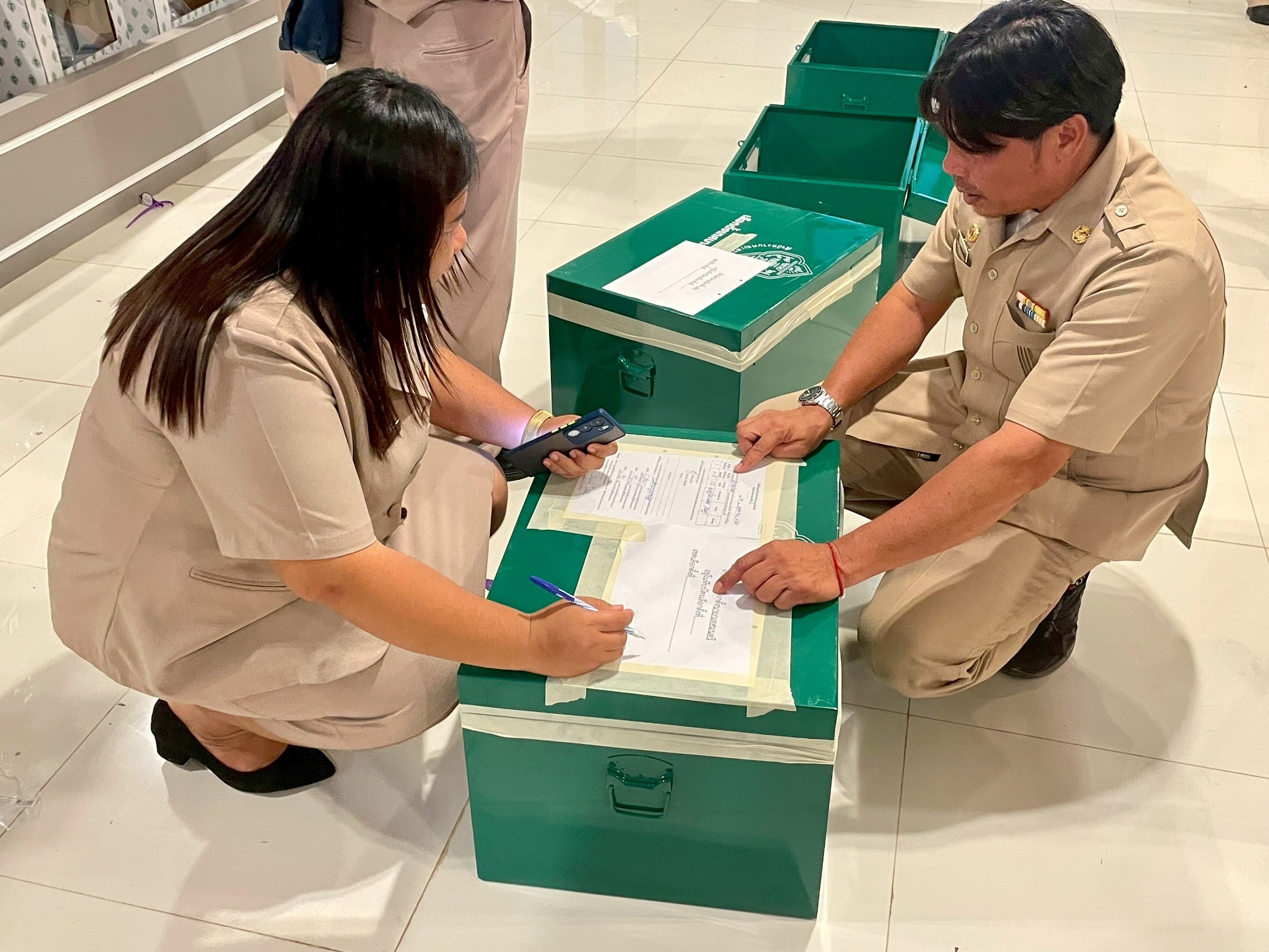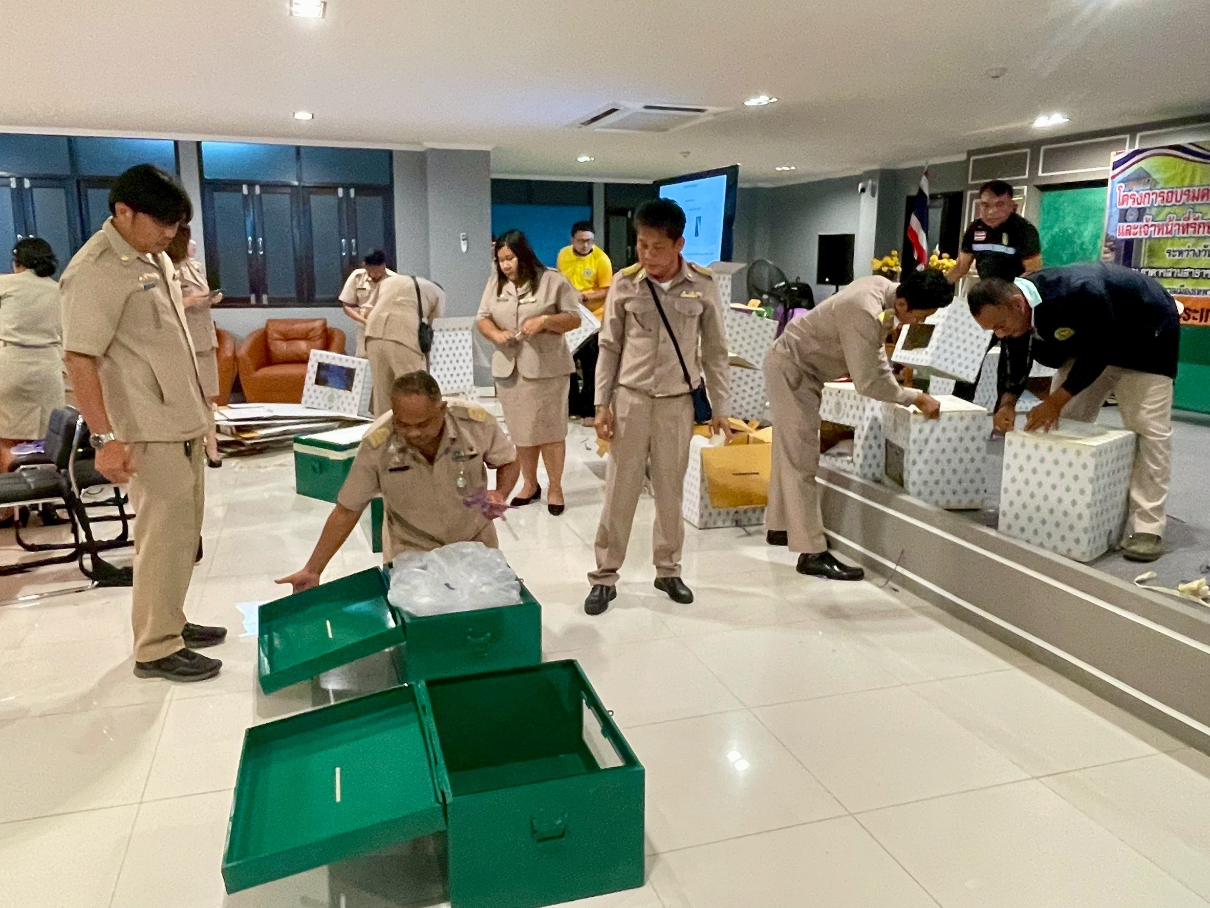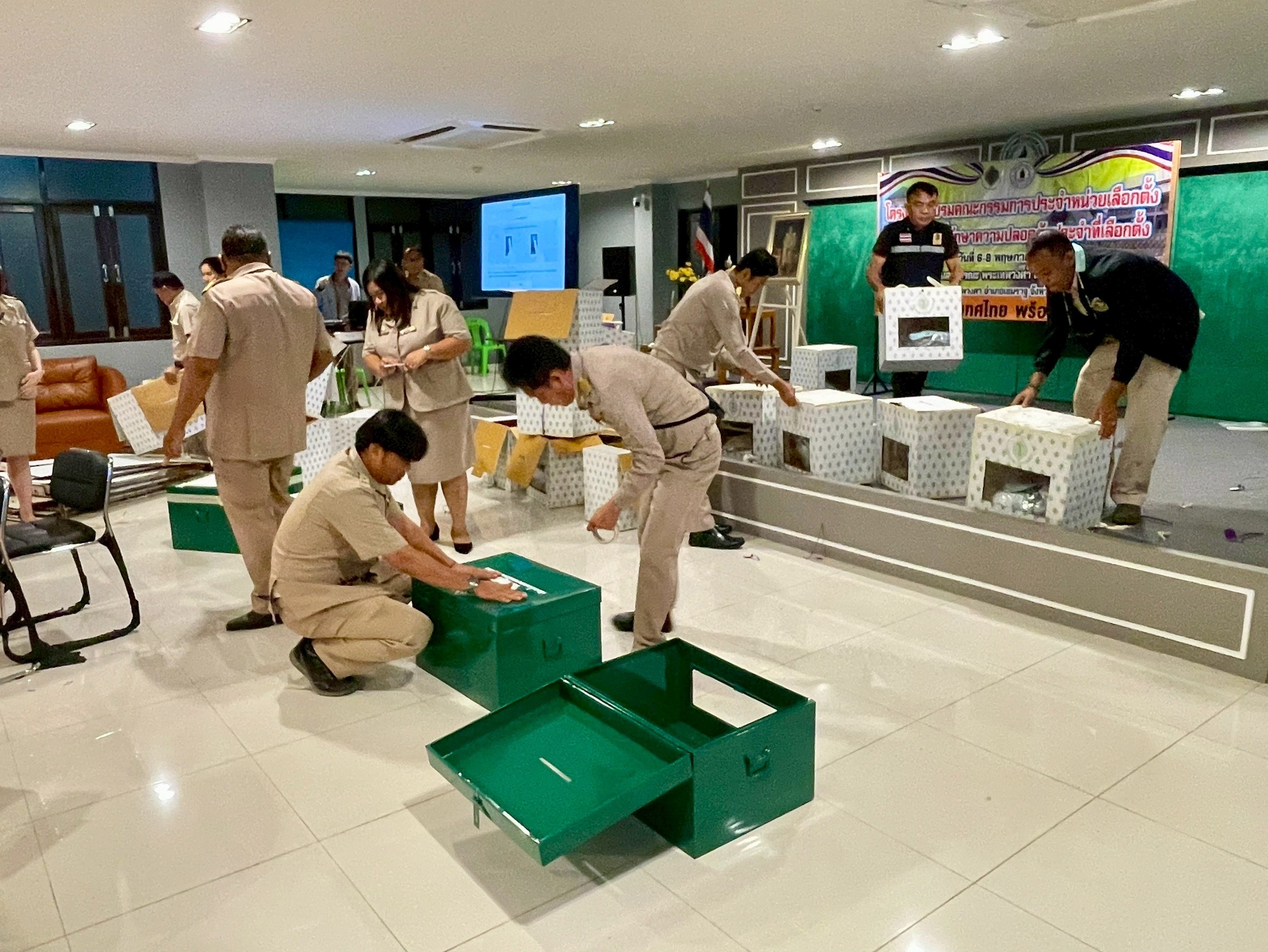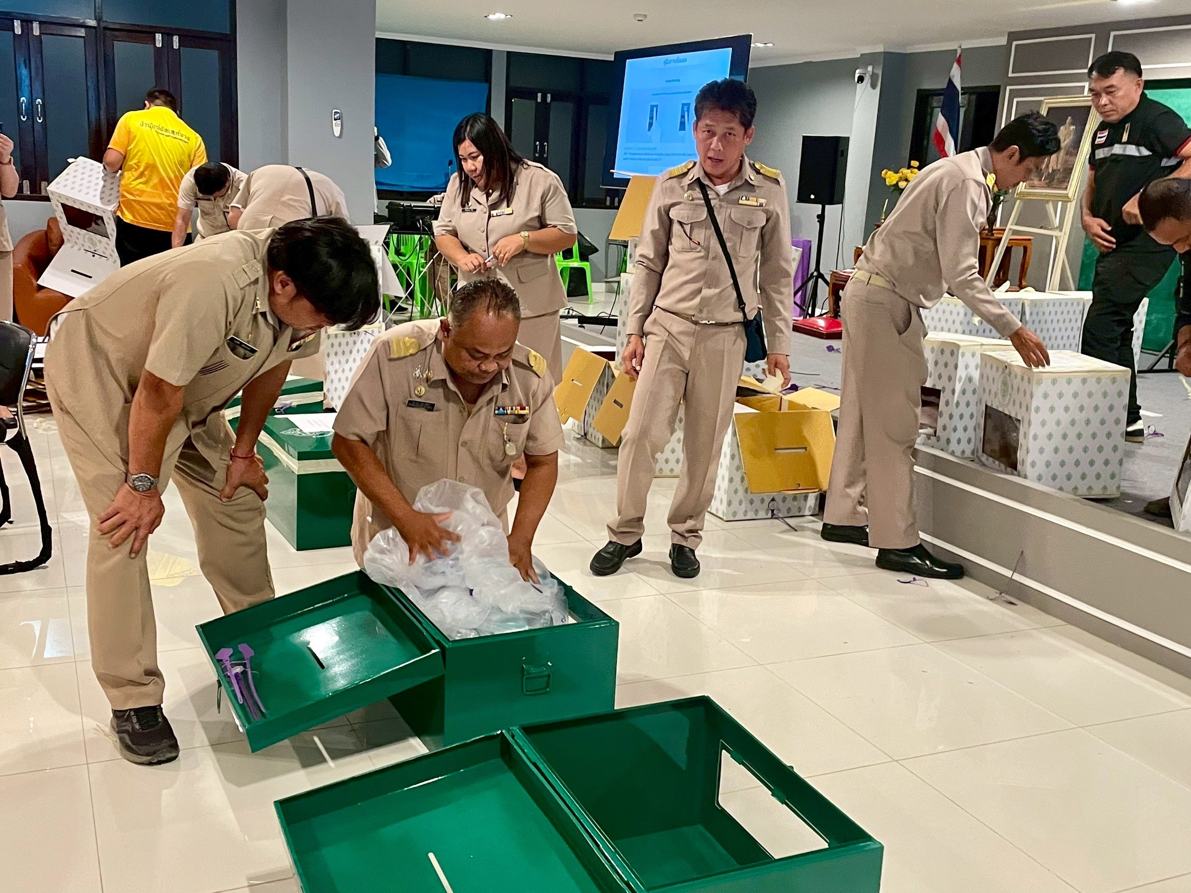 มอบหีบบัตรเลือกตั้ง บัตรเลือกตั้ง วัสดุอุปกรณ์ในการเลือกตั้ง หลังดำเนินการเลือกตั้งเป็นที่เรียบร้อยแล้ว จากคณะกรรมการประจำหน่วยเลือกตั้ง (กปน.) ภายในเขตพื้นที่เทศบาล จำนวน 3 เขต รวม 17 หน่วย