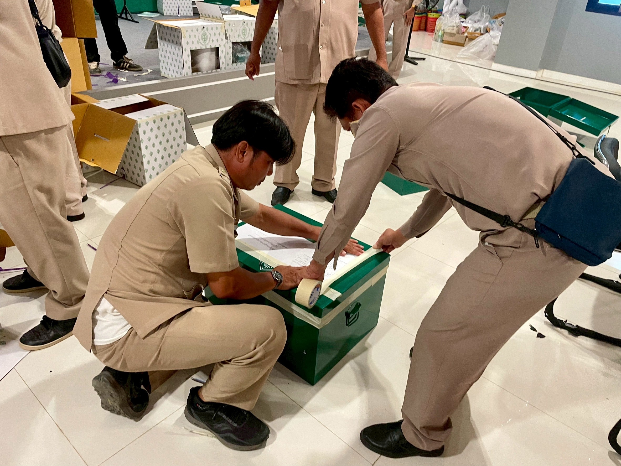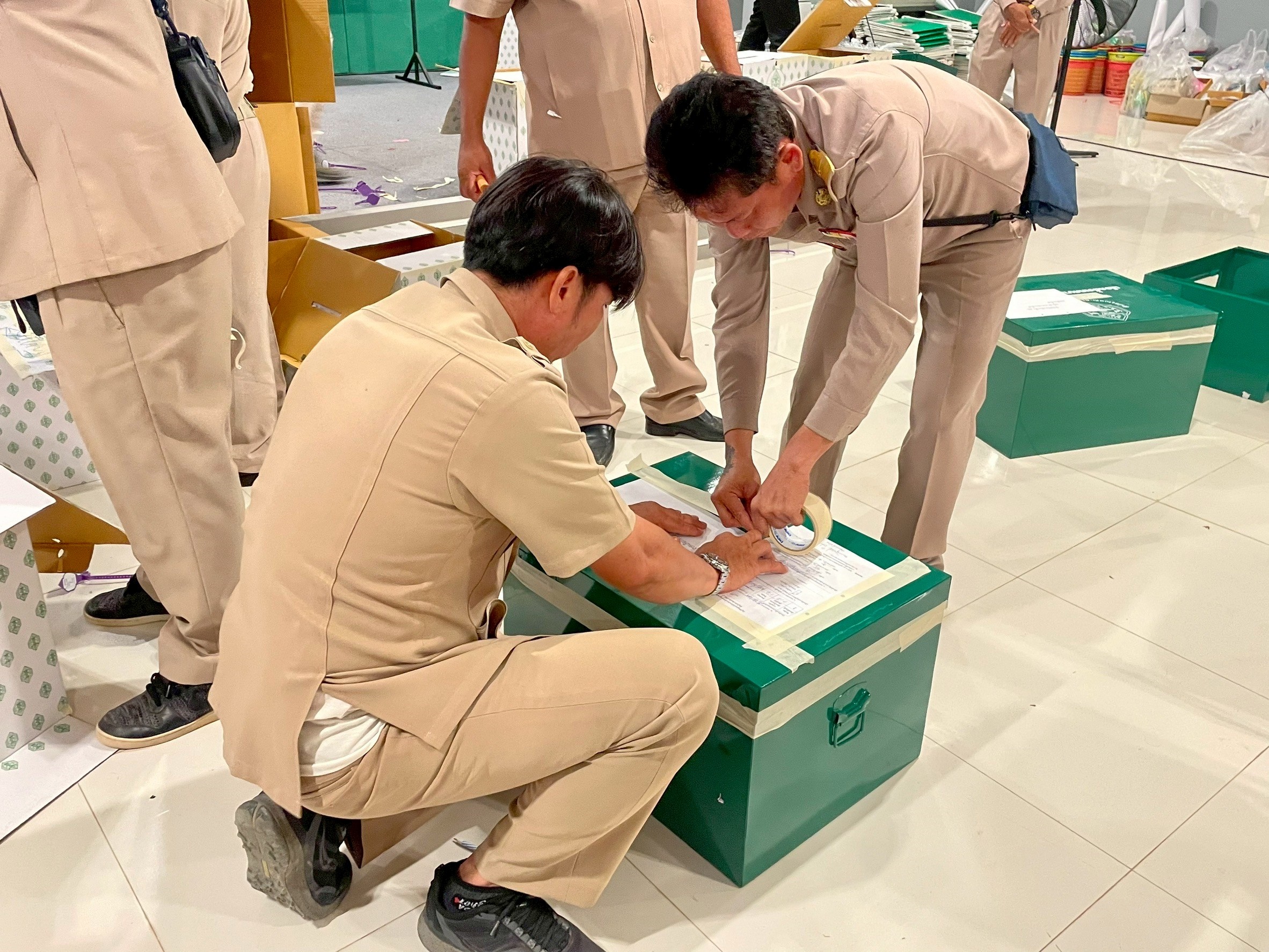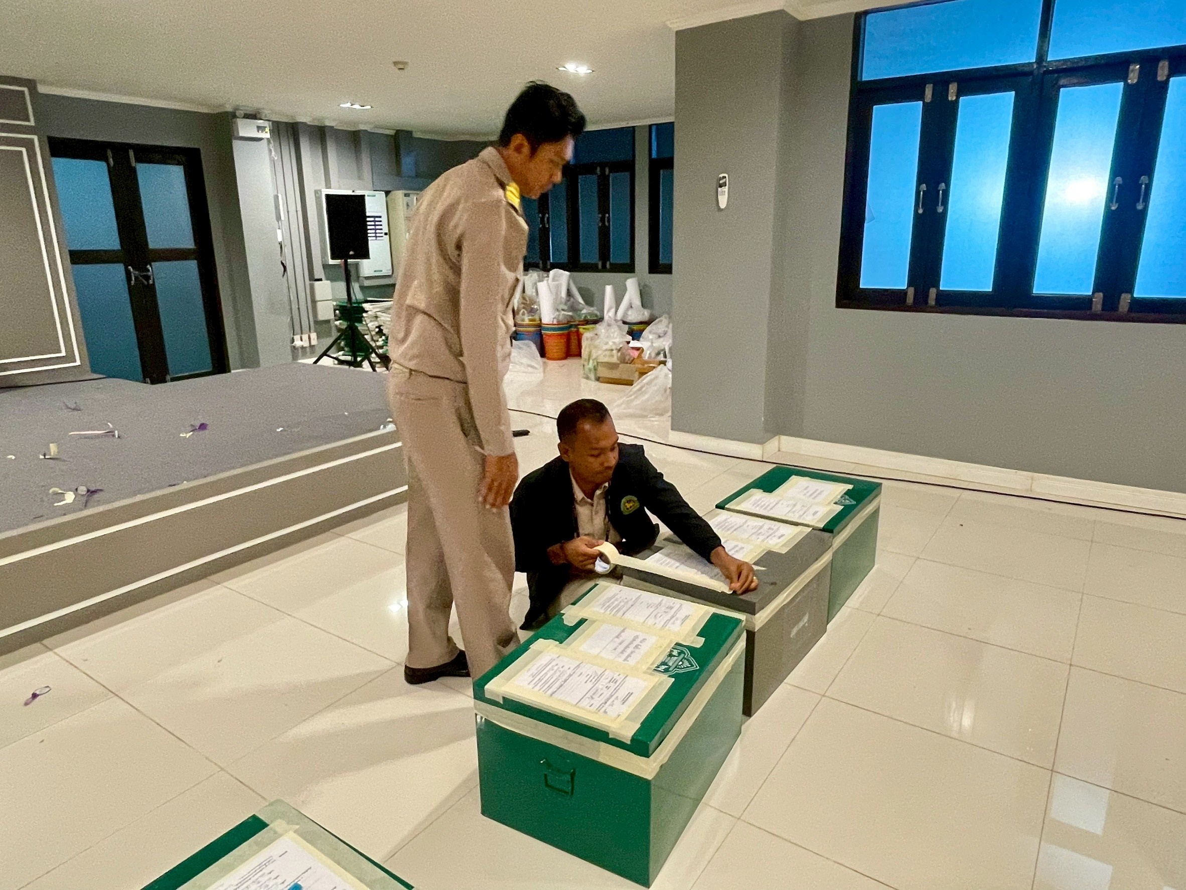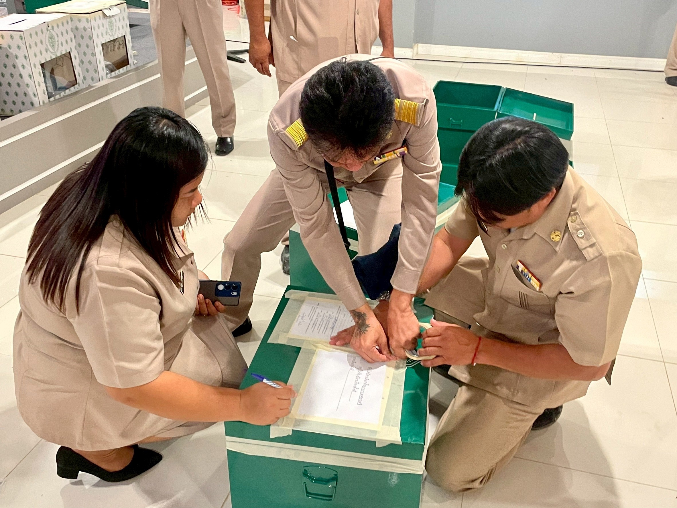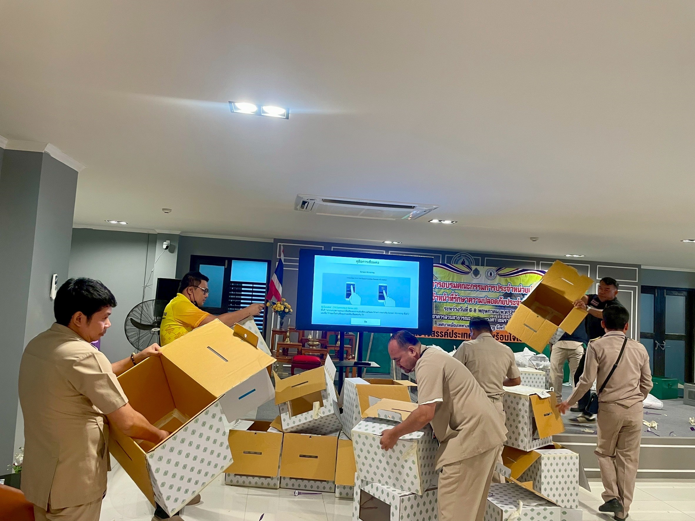 มอบหีบบัตรเลือกตั้ง บัตรเลือกตั้ง วัสดุอุปกรณ์ในการเลือกตั้ง หลังดำเนินการเลือกตั้งเป็นที่เรียบร้อยแล้ว จากคณะกรรมการประจำหน่วยเลือกตั้ง (กปน.) ภายในเขตพื้นที่เทศบาล จำนวน 3 เขต รวม 17 หน่วย