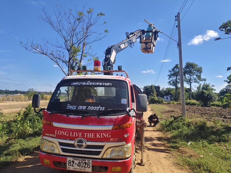 วันพุธ, 26 พฤศจิกายน 2568 11:36วันศุกร์ที่ 26 ธันวาคม 2568 นายชูชีพ เหล่ากสิการ นายกเทศมนตรีเมืองเทพวงศา มอบหมายให้เจ้าหน้าที่กองช่าง เทศบาลเมืองเทพวงศา ลงพื้นที่ทำการซ่อมแซมไฟฟ้าส่องสว่างให้กับประชาชนในพื้นที่บ้านห้วยยาง หมู่ที่ 10 เพื่อเพิ่มความปลอดภัยของประชาชนในการสัญจรยามค่ำคืน อำนวยความสะดวก เพื่อสร้างความมั่นใจและเพื่อเพิ่มความปลอดภัยในการใช้รถใช้ถนนในการสัญจรให้แก่ประชาชนในพื้นที่