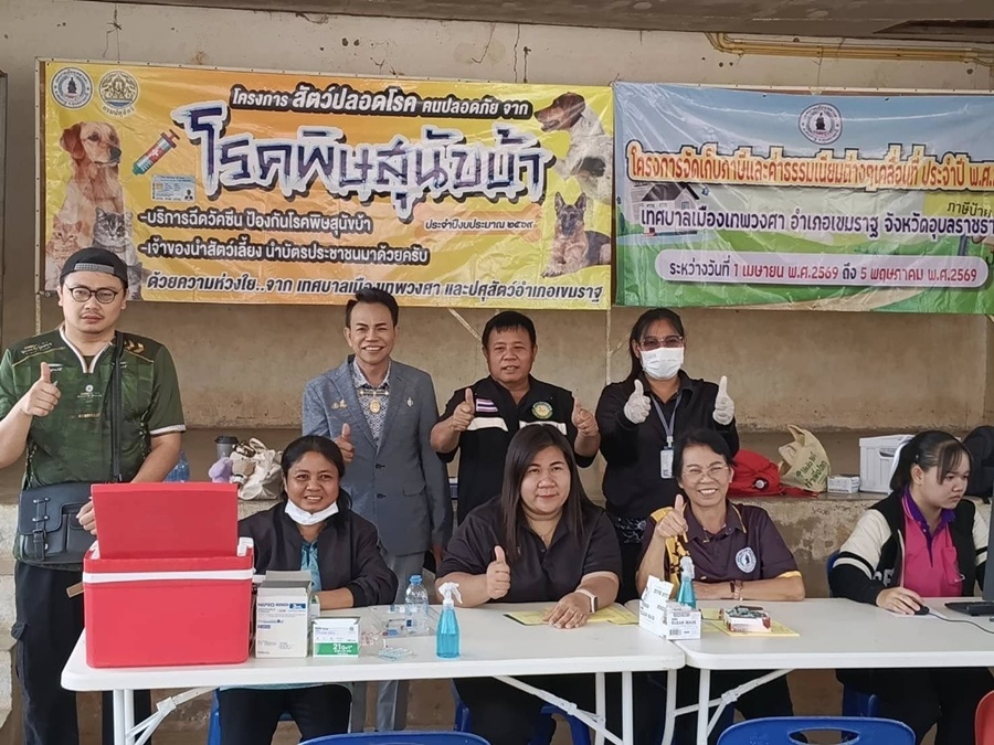 วันพุธ, 08 เมษายน 2569 13:52งานสาธารณสุขและสิ่งแวดล้อม สำนักปลัดเทศบาลเมืองเทพวงศา บริหารงานโดย นายชูชีพ เหล่ากสิการ นายกเทศมนตรีเมืองเทพวงศา ลงพื้นที่ตามแผนการปฏิบัติงาน ตามโครงการสัตว์ปลอดโรคคนปลอดภัยจากโรคพิษสุนัขบ้า ประจำปีงบประมาณ พ.ศ. 2569 ในการออกให้บริการ ฉีดวัคซีนป้องกันโรคพิษสุนัขบ้า ทั้งหมด 17 หมู่บ้าน ในเขตพื้นที่เทศบาลเมืองเทพวงศา